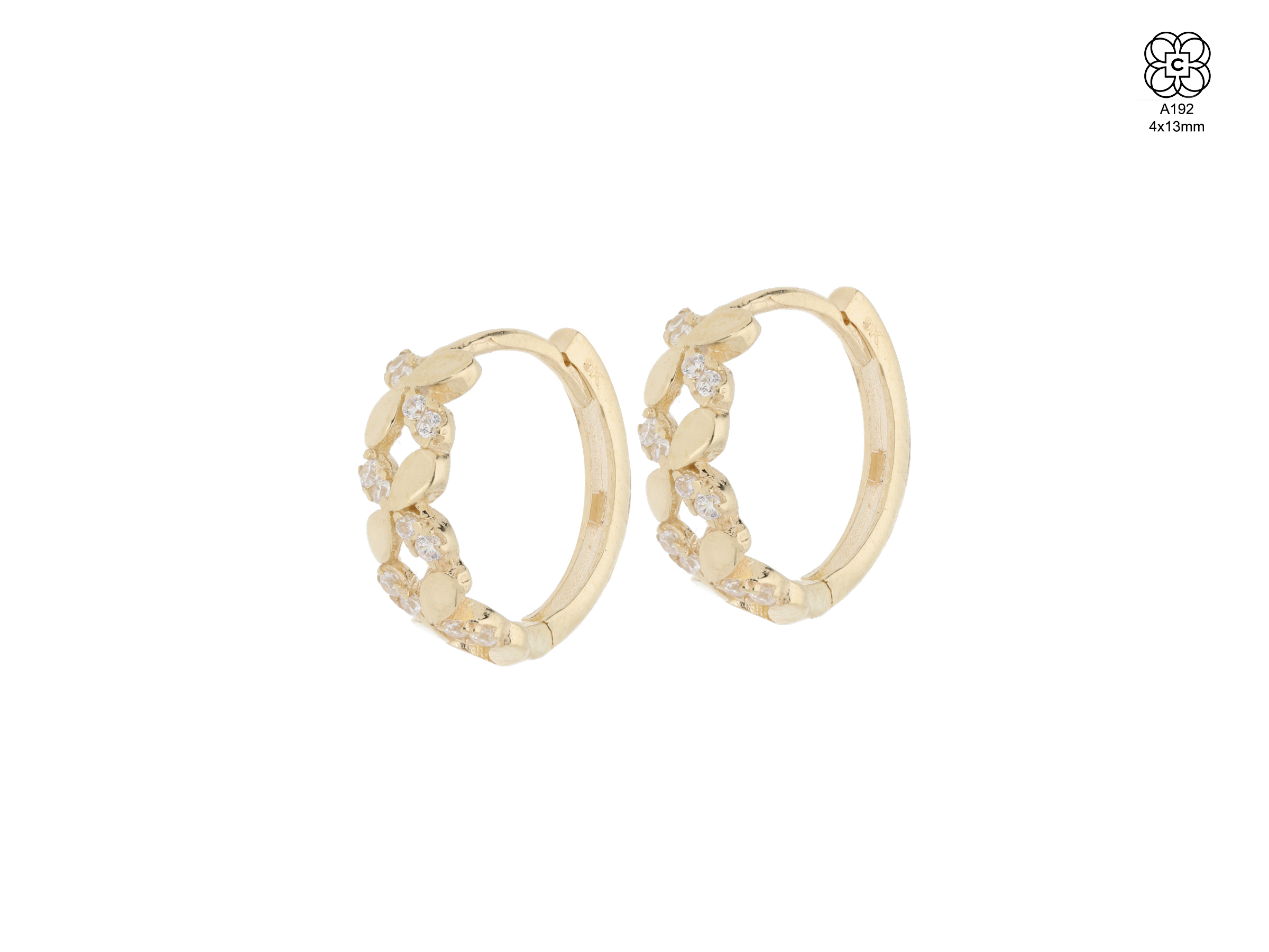 *Caravana *Material: Oro 9K *Color del Metal: Amarillo *Piedra: Circonita *Tamaño 13 mm
