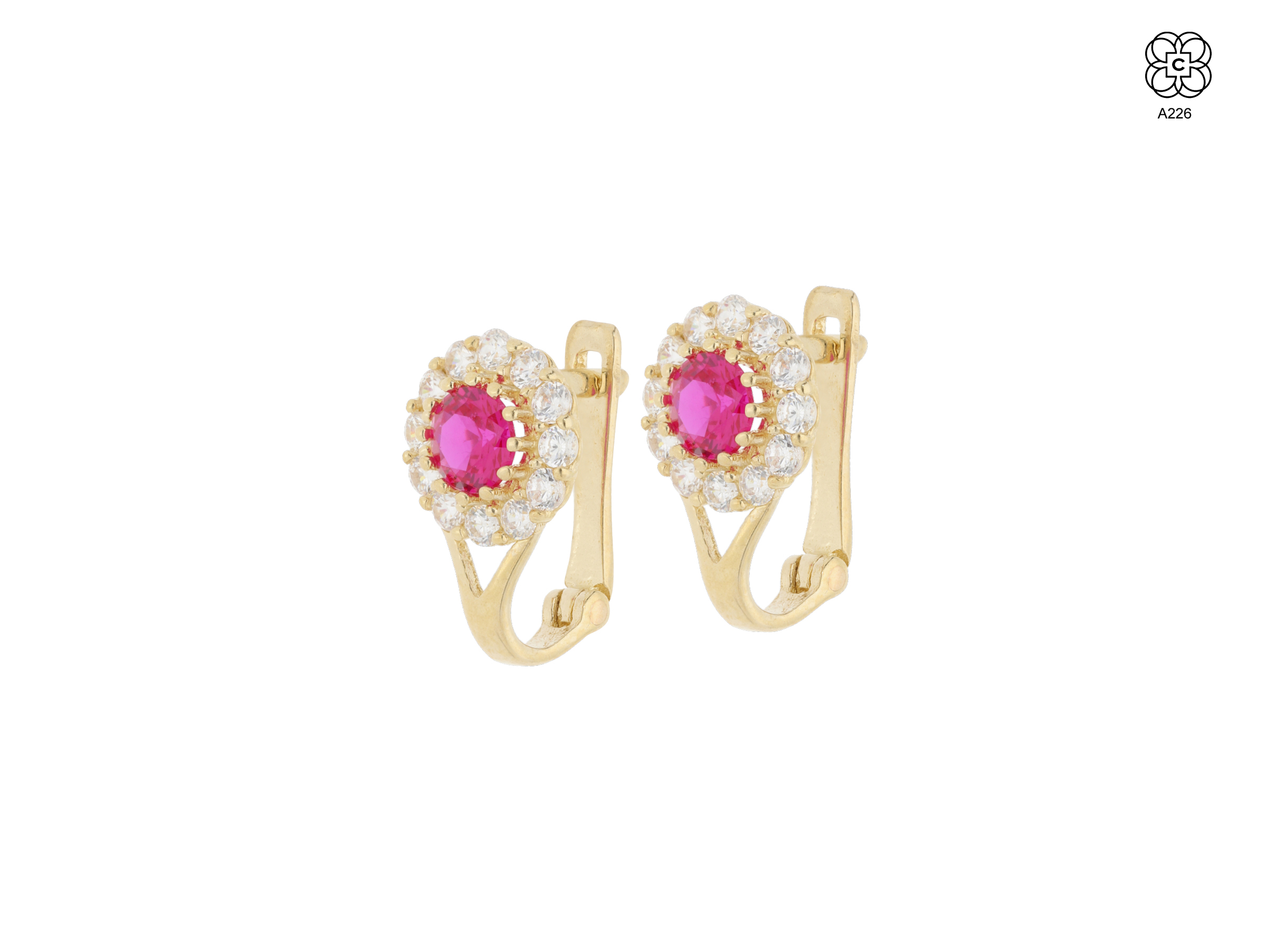 *Caravana *Material: Oro 9K *Color del Metal: Amarillo *Piedra: Circonita color Rubí