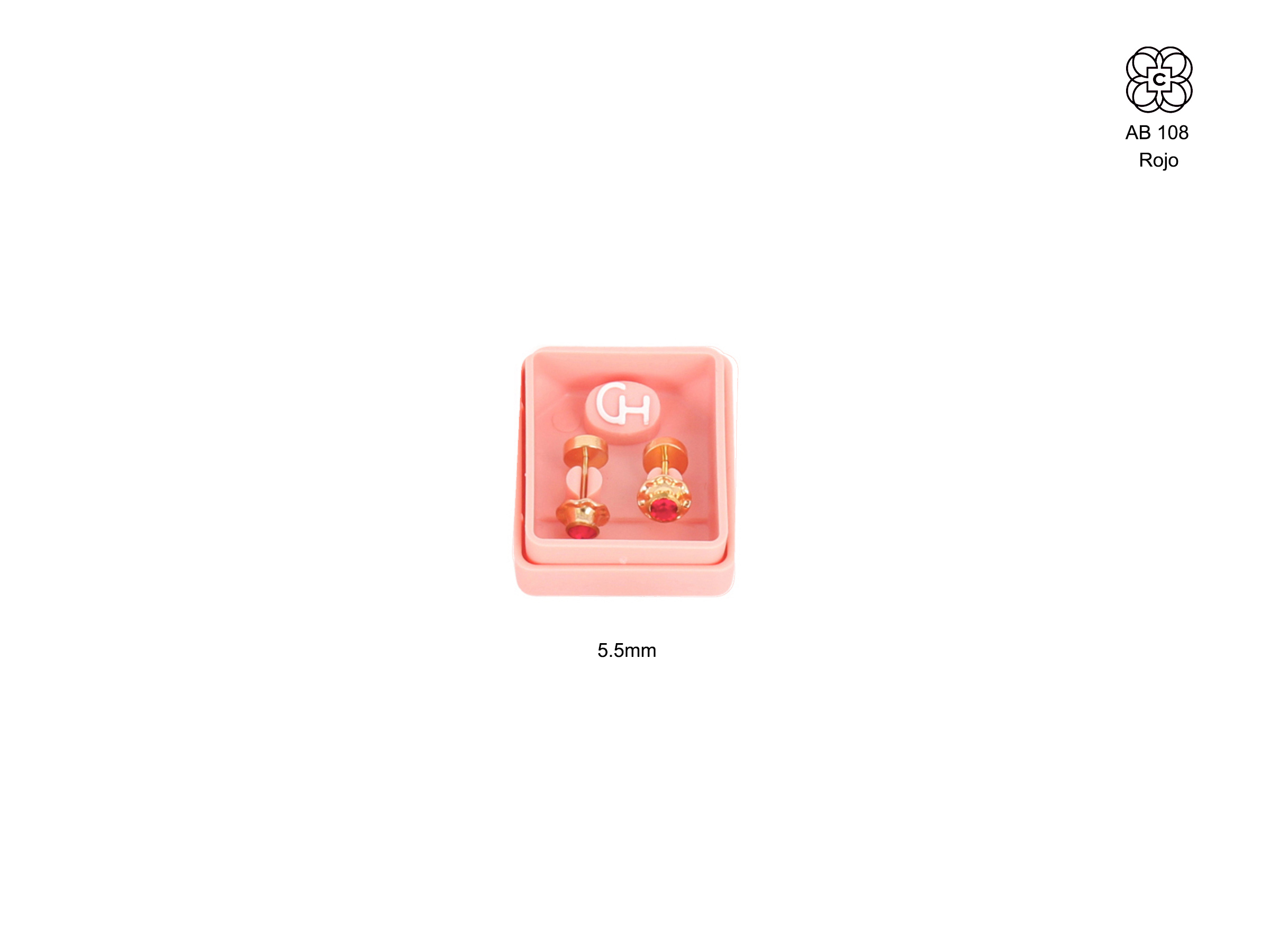 *Abridor *Material: Perno oro bajo Piedra: circonita rubí mediana