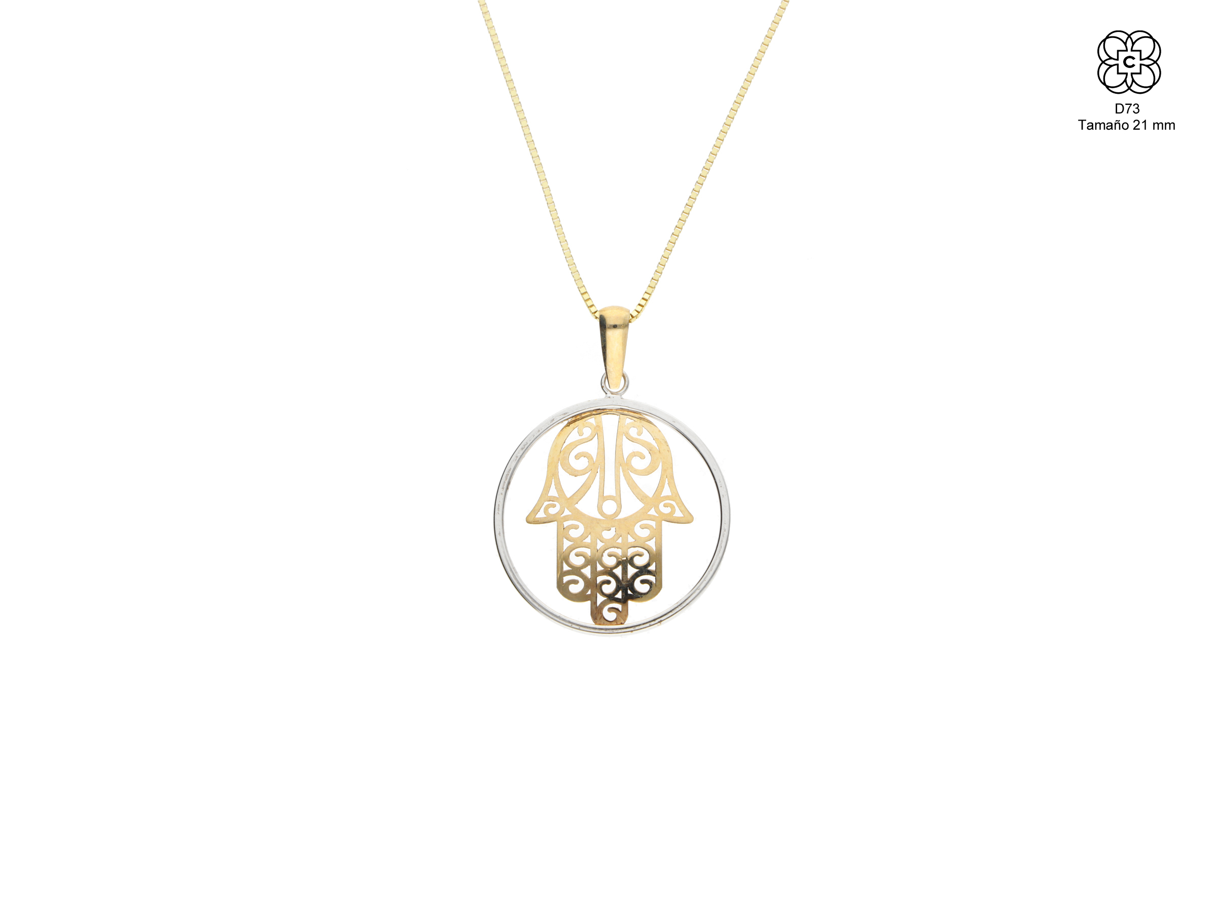 *Colgante *Material: Oro 9K *Color del Metal: Bicolor *Piedra: No *Tamaño: 21 mm