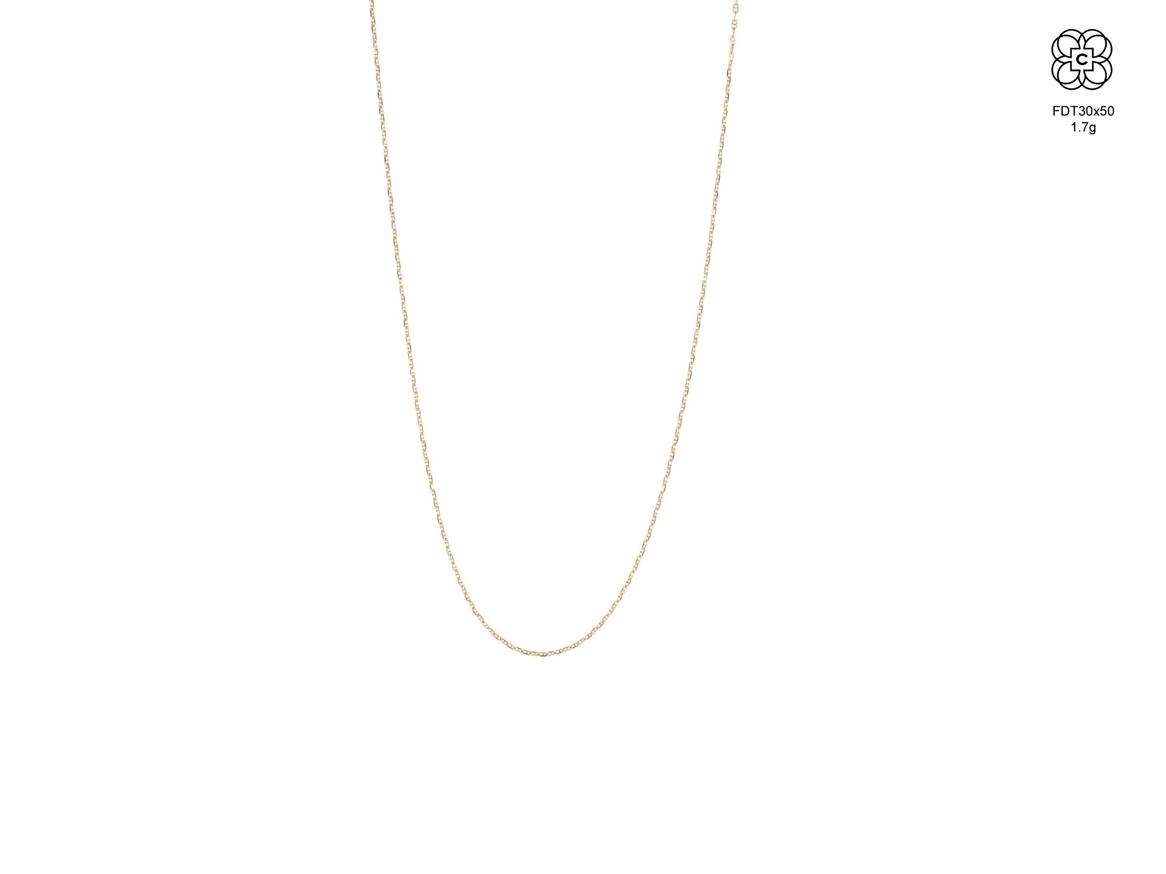 *Cadena *Material: Oro 9K *Color del Metal: Amarillo *Tamaño: 50 cm *Peso aprox.: 1.3 g