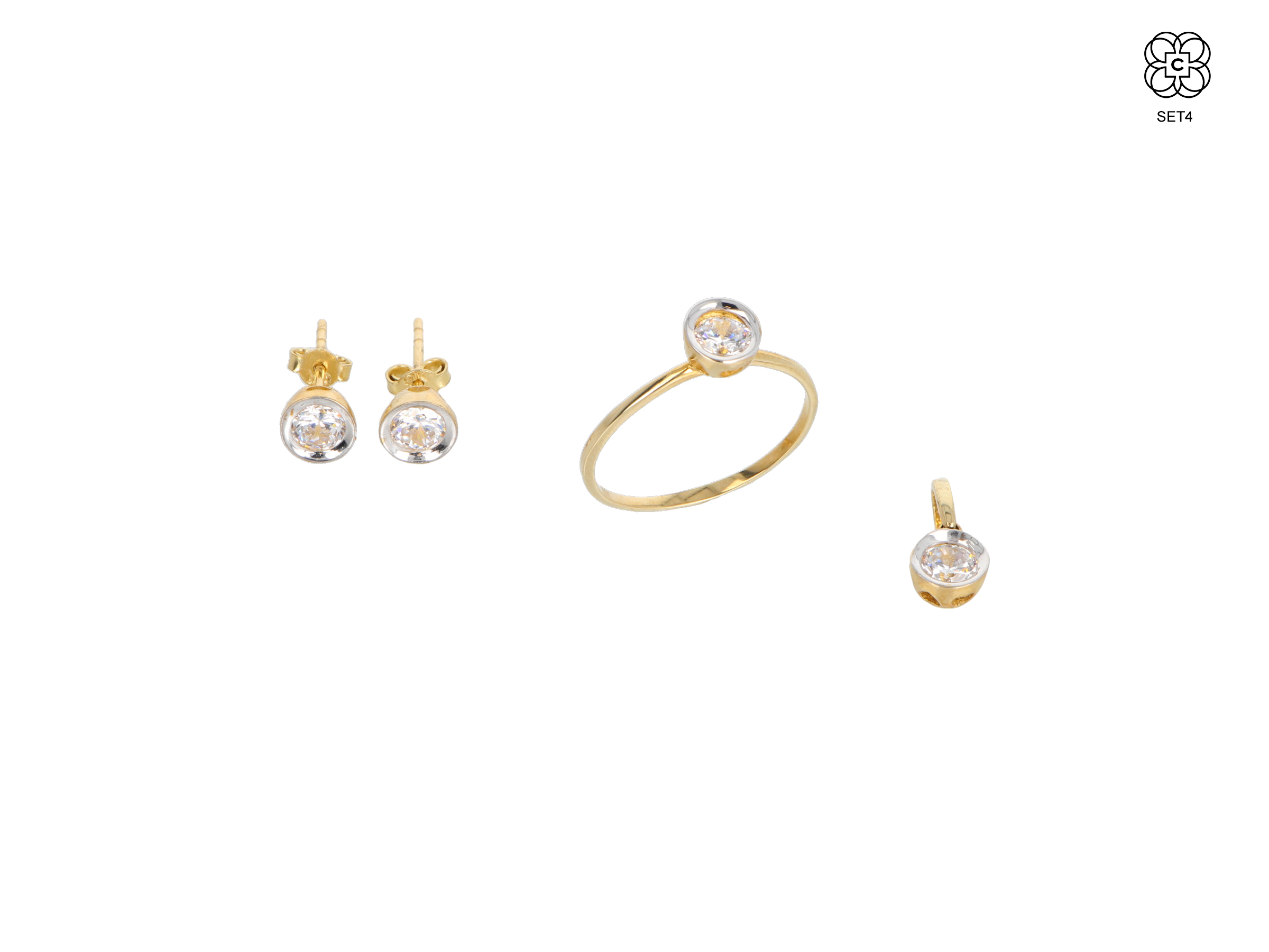 *Set *Material: Oro 9K *Color del Metal: Bicolor *Piedra: Circonita